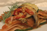 Masa al huevo, salsa pomodoro, berenjenas, zapallo italiano, champiñones y queso mozzarella