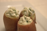 Papas con piel asadas y cubiertas con Ricotta, yogurt natural y ciboulette